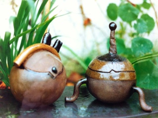 Tableaux en céramique, Plateaux, Bols, Boules et Récipients, Objets décoratifs, et petites Sculptures. Presque toutes les céramiques sont cuites au feu,.. technique RAKU.